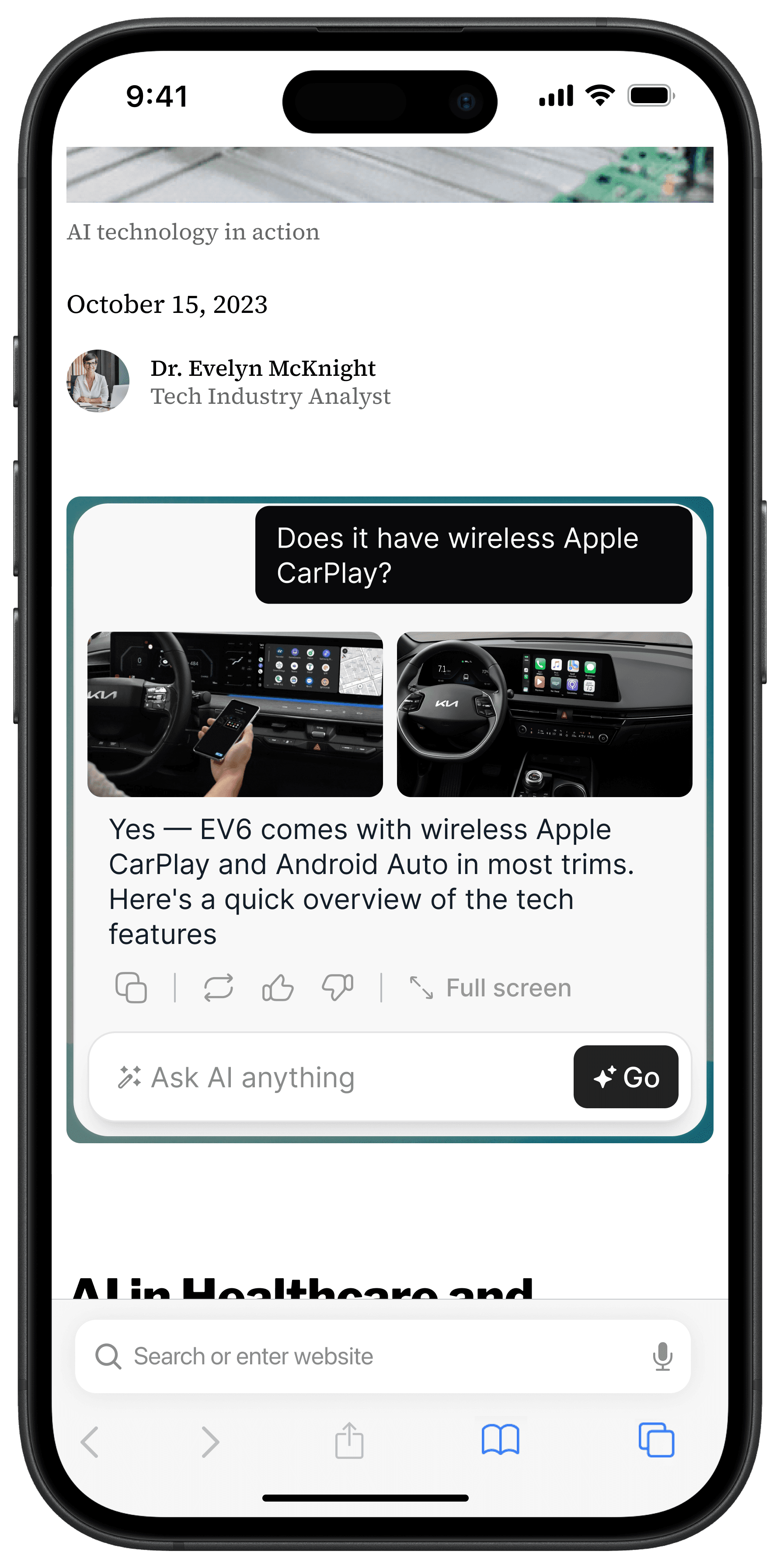 For longer interactions, I introduced a full-screen mode. It gives the conversation space to breathe when things get detailed, without cluttering the small, compact view.