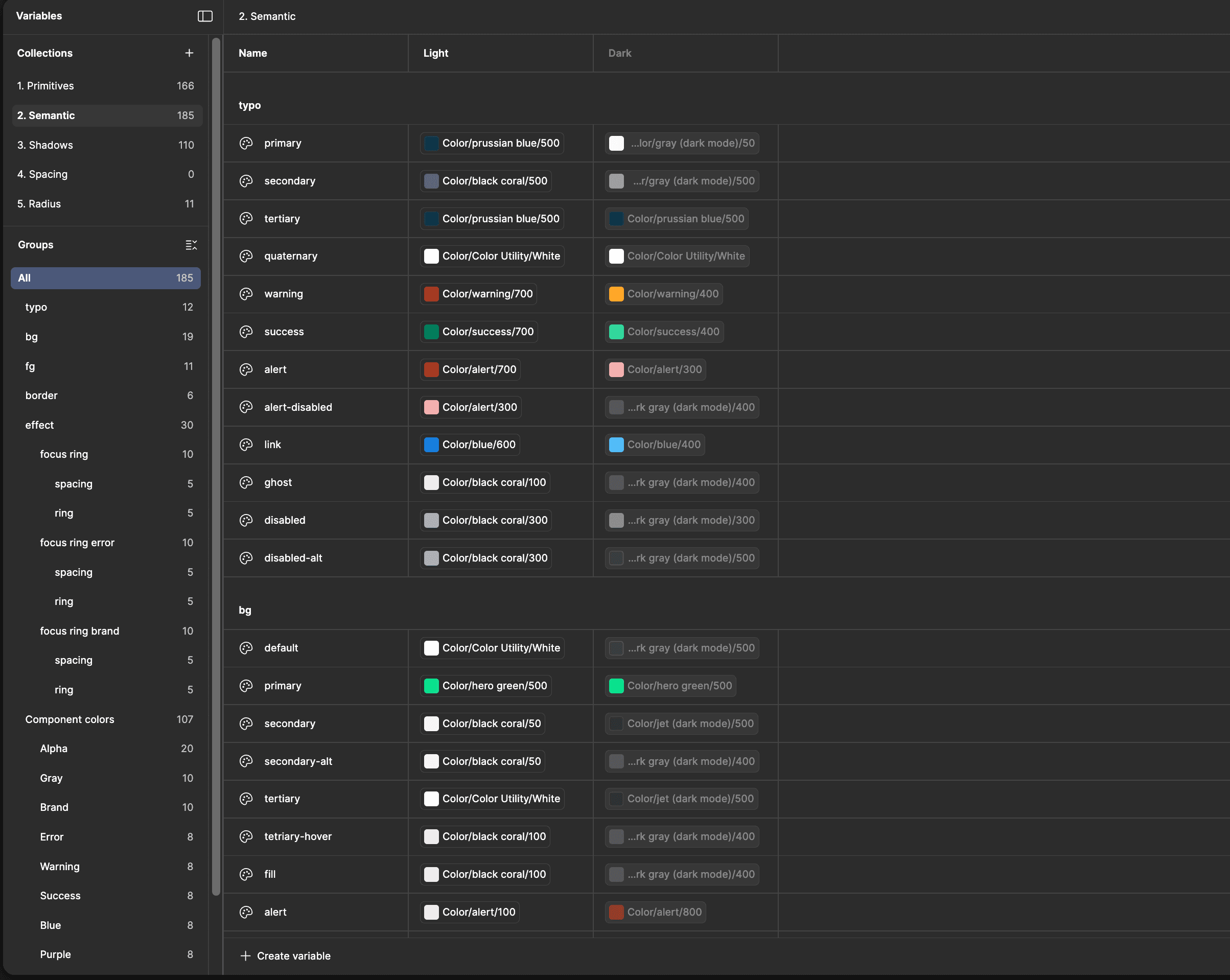 Built a token architecture to separate raw values (Primitives) from their actual purpose (Semantics).