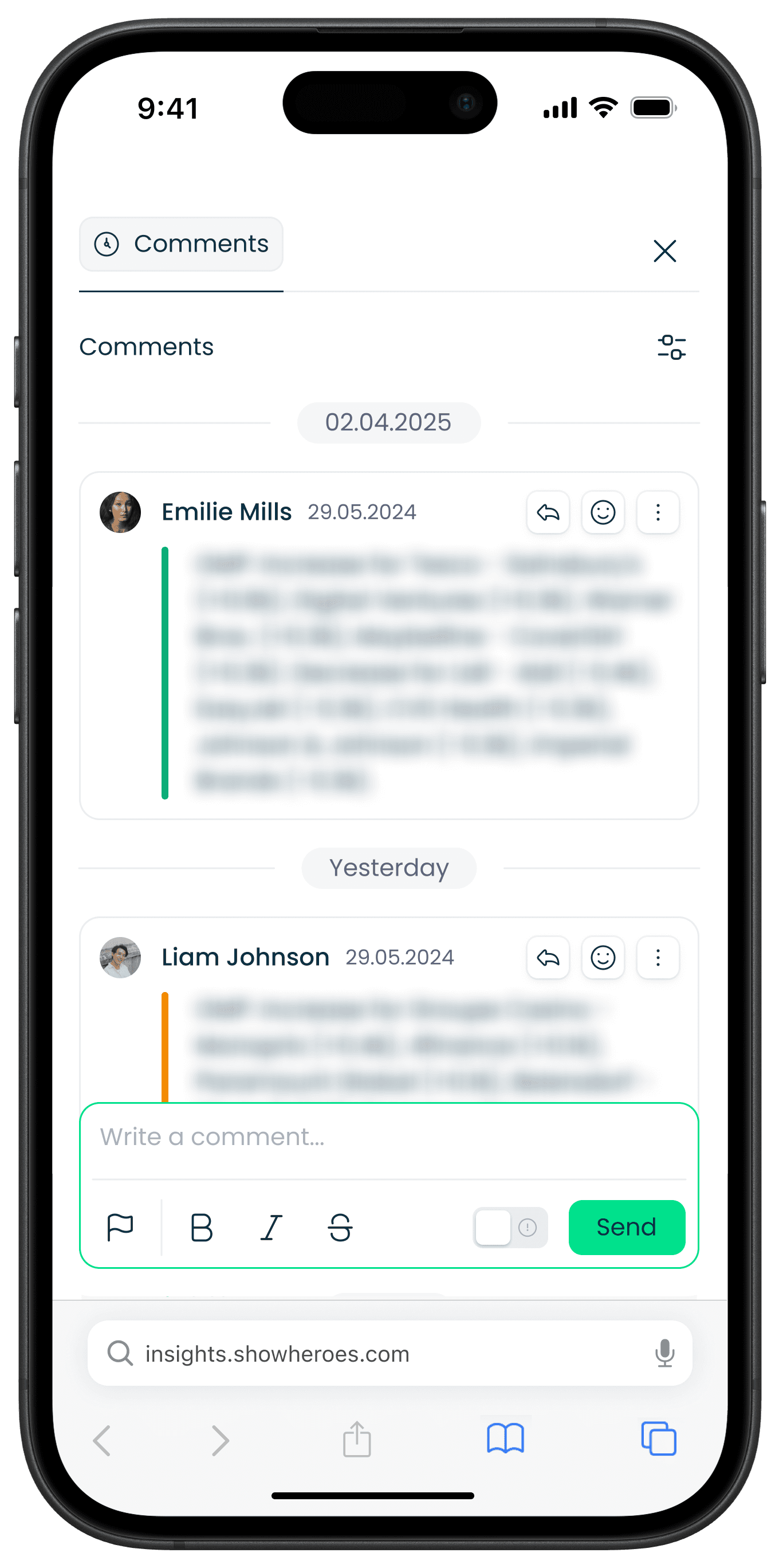 New comments section for sharing analytics and real-time, enabling top management to track performance and highlight key insights